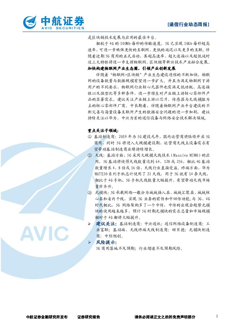 中航证券:通信行业周报:《“物联网+区块链”应用与发展白皮书》发布,共同构建产业新生态.pdf