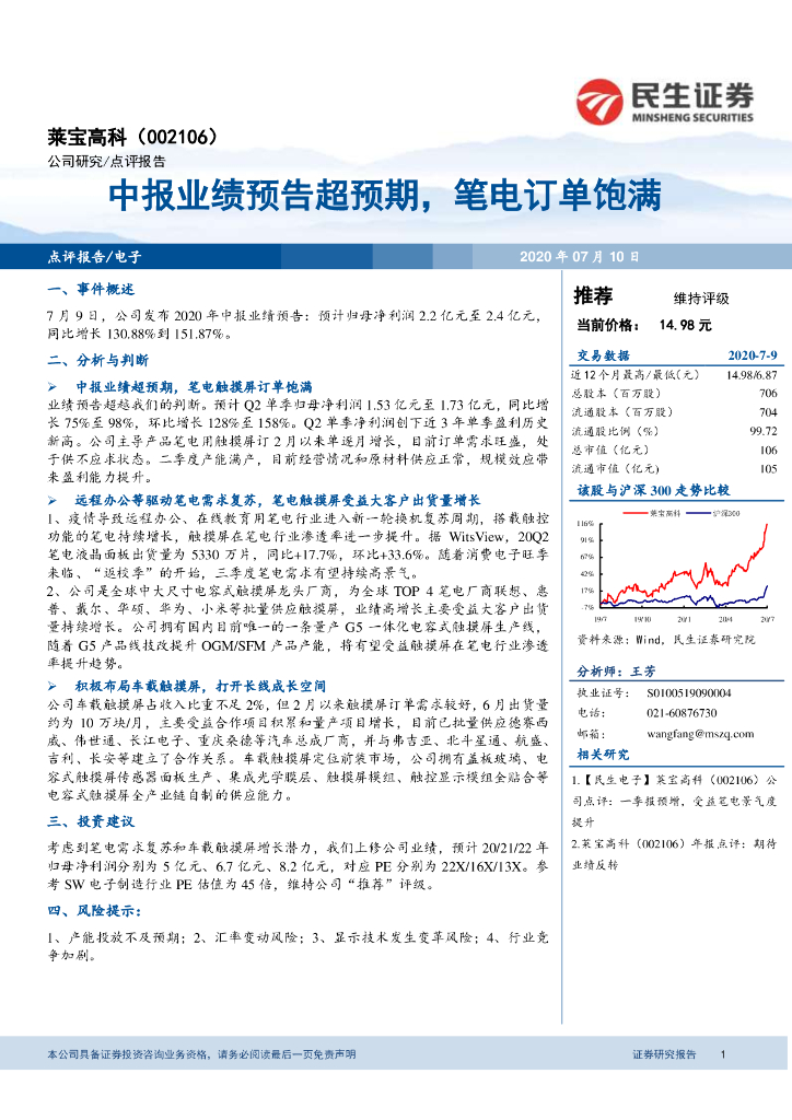 民生证券:莱宝高科(002106)-中报业绩预告超预期,笔电订单饱满.pdf