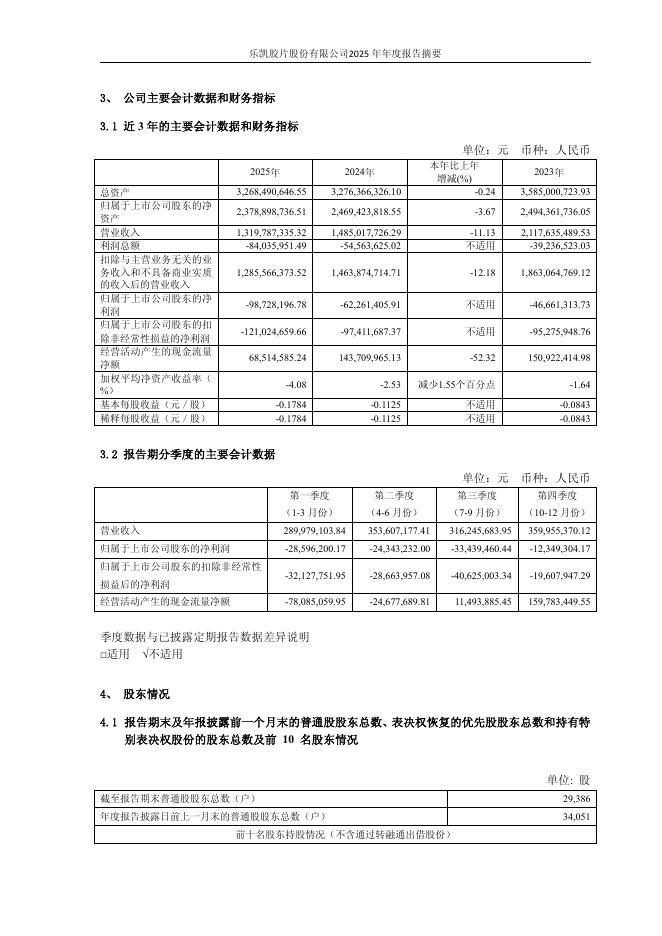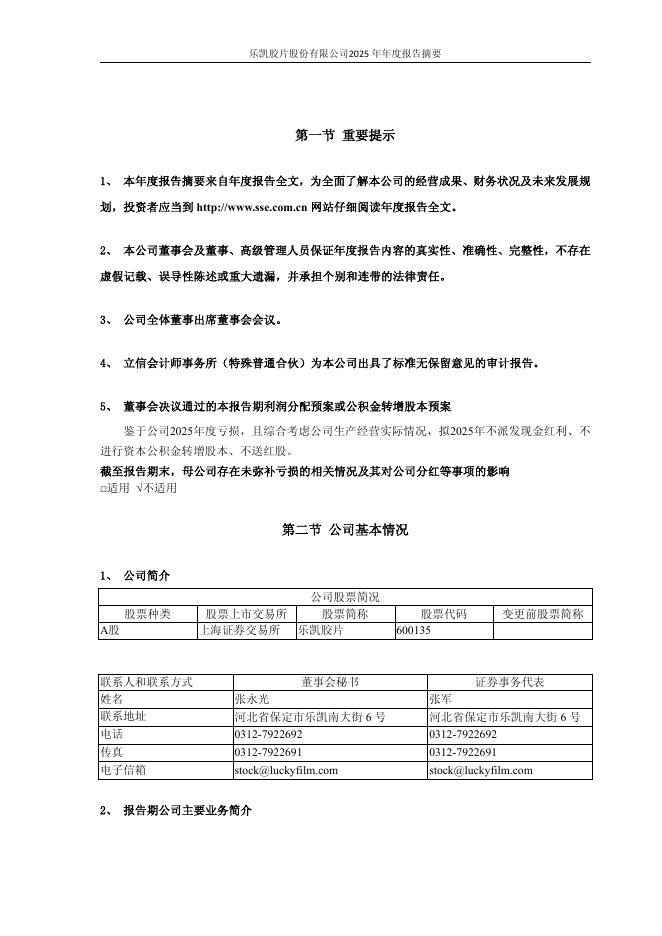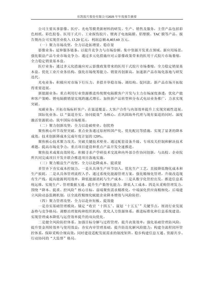 600135-乐凯胶片:乐凯胶片股份有限公司2025年年度报告摘要.pdf