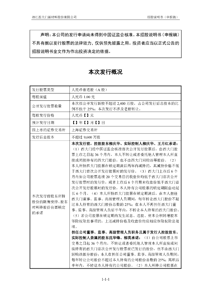浙江西大门新材料股份有限公司上交所主板IPO上市招股说明书.pdf