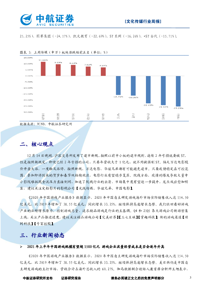 中航证券:文化传媒行业周报:退市新规利好部分影视公司,游戏行业依旧维持高景气度.pdf