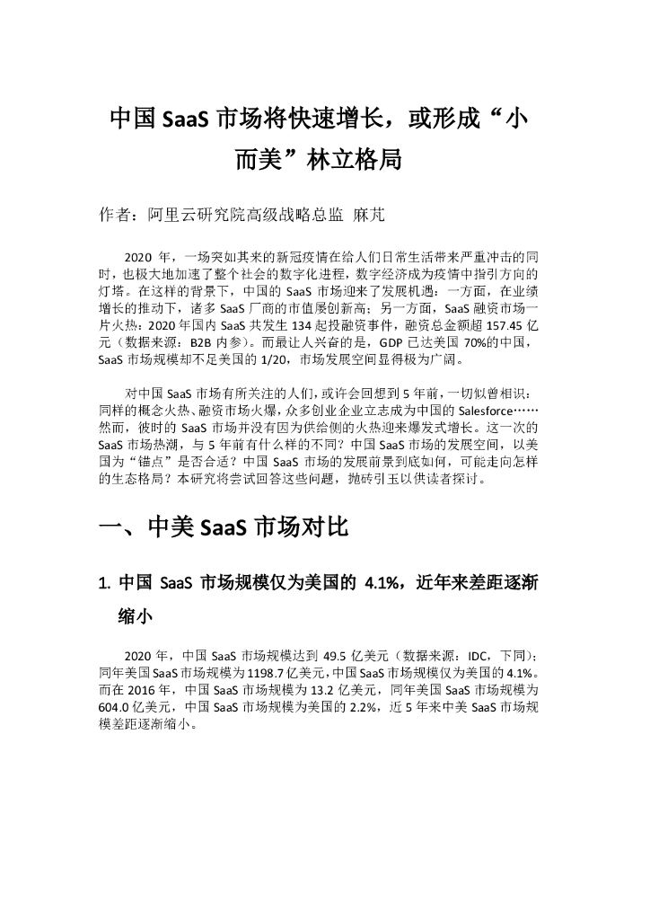 阿里云:中国SaaS市场将快速增长,或形成“小而美”林立格局.pdf