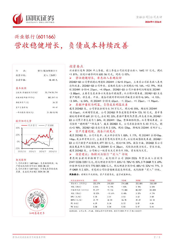 国联证券:兴业银行(601166)-营收稳健增长,负债成本持续改善.pdf
