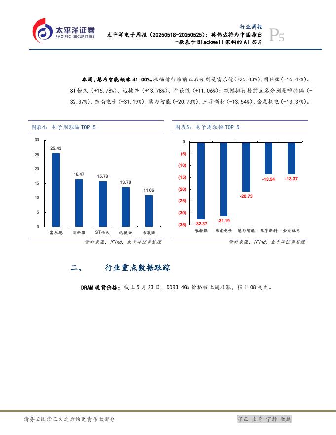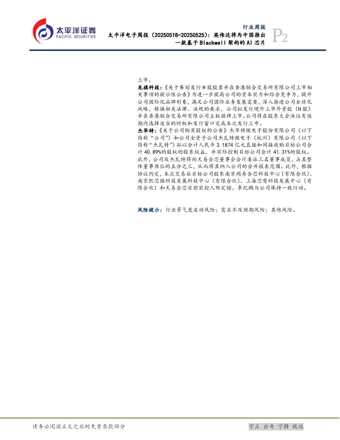 太平洋证券:电子行业周报:英伟达将为中国推出一款基于Blackwell架构的AI芯片.pdf