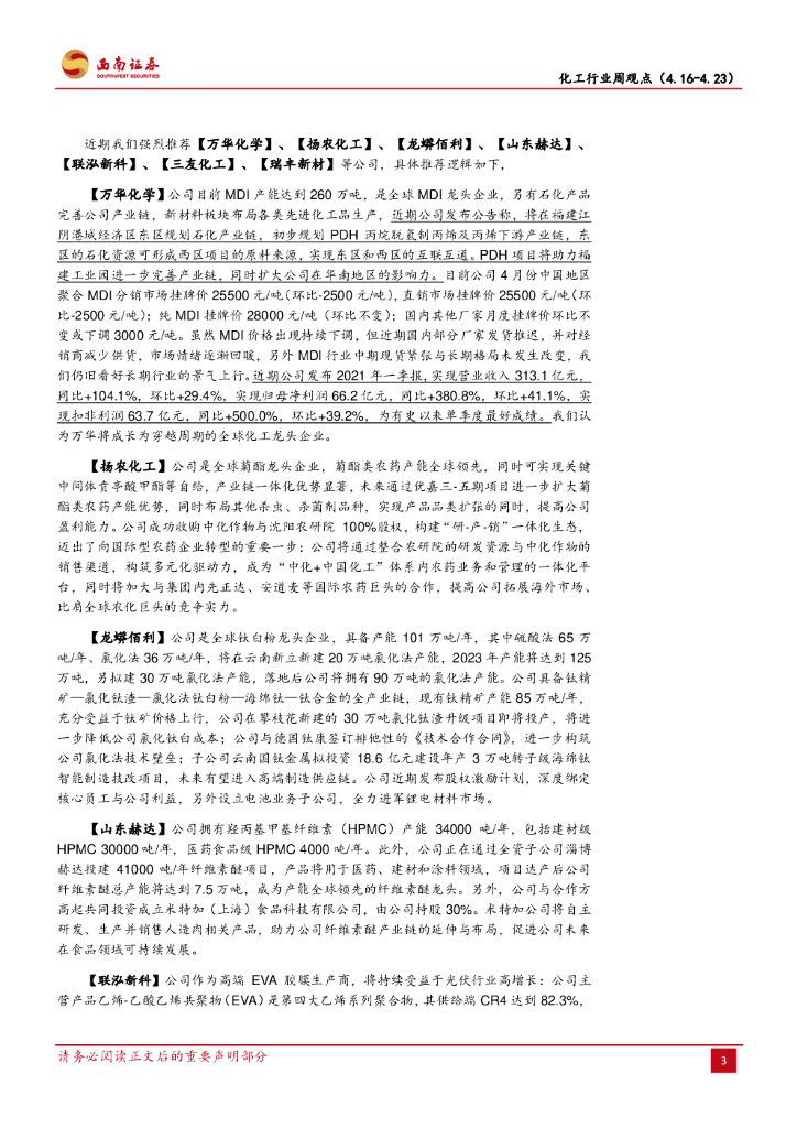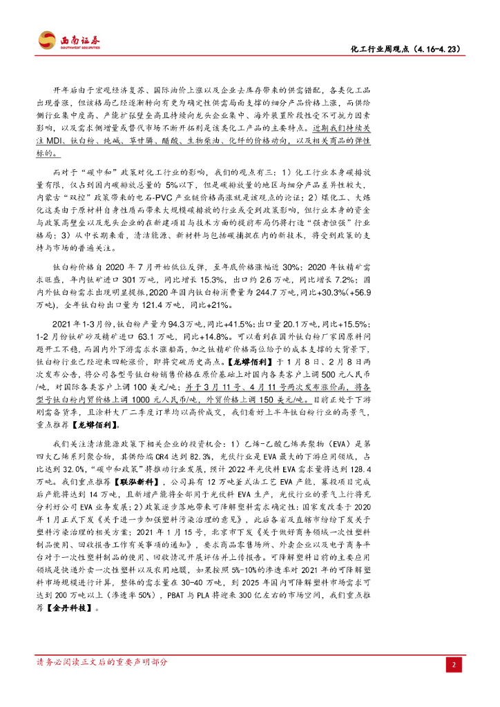 西南证券:化工行业周观点:钛白粉、草甘膦、醋酸维持涨势.pdf