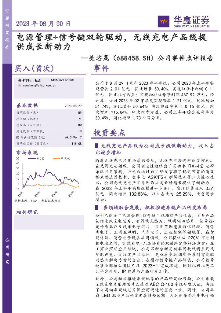 华鑫证券:美芯晟(688458)-公司事件点评报告:电源管理+信号链双轮驱动,无线充电产品线提供成长新动力.pdf