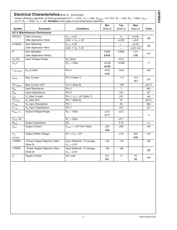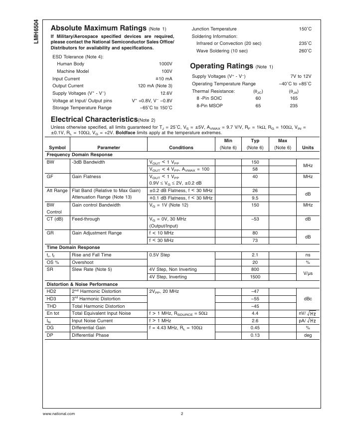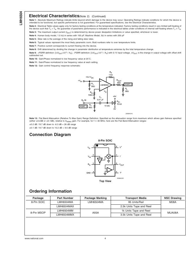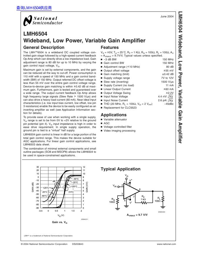National Semiconductor LMH6504 Wideband, Low Power, Variable Gain Amplifier 数据手册.pdf