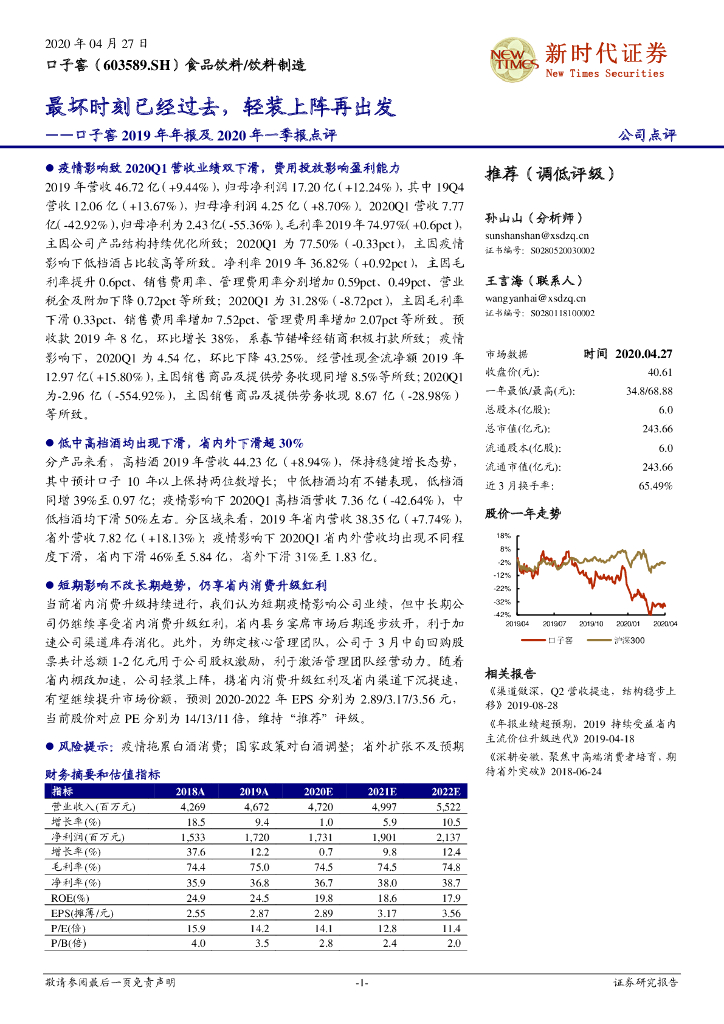 新时代证券:口子窖2019年年报及2020年一季报点评:最坏时刻已经过去,轻装上阵再出发.pdf