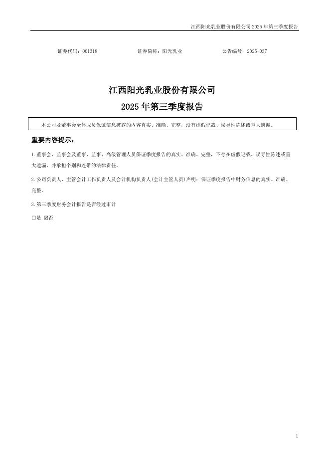 001318-阳光乳业:2025年三季度报告.pdf