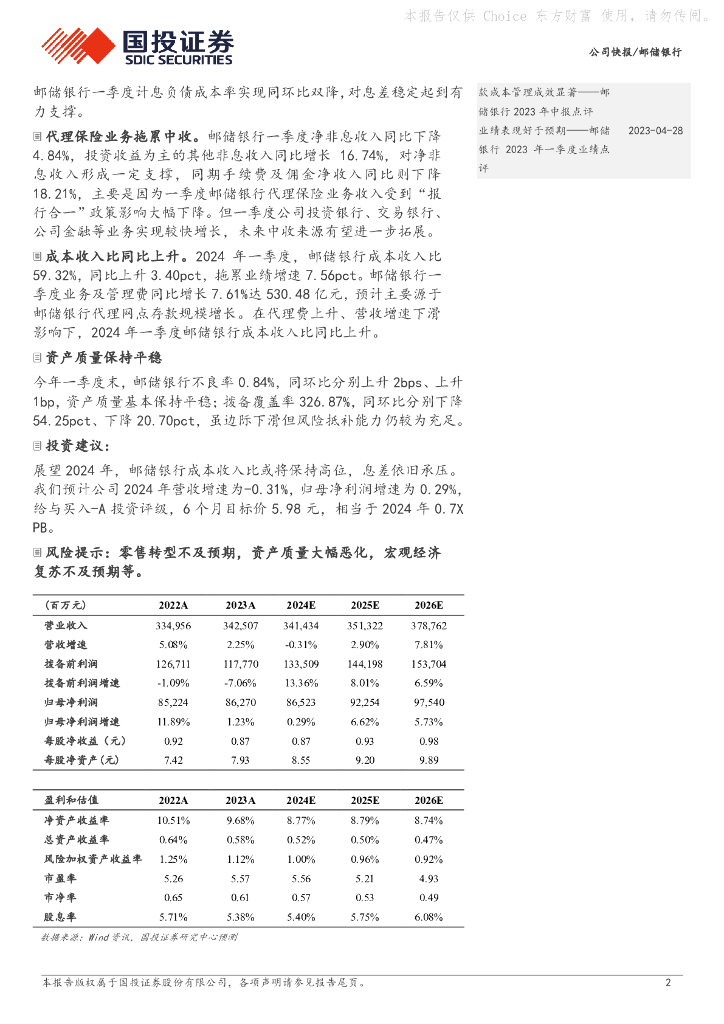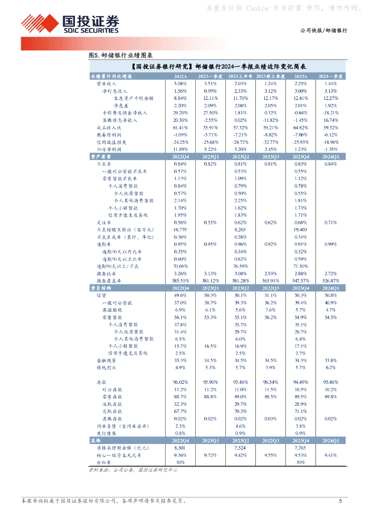 国投证券:邮储银行2024年一季报点评:信贷规模扩张,息差降幅收窄.pdf