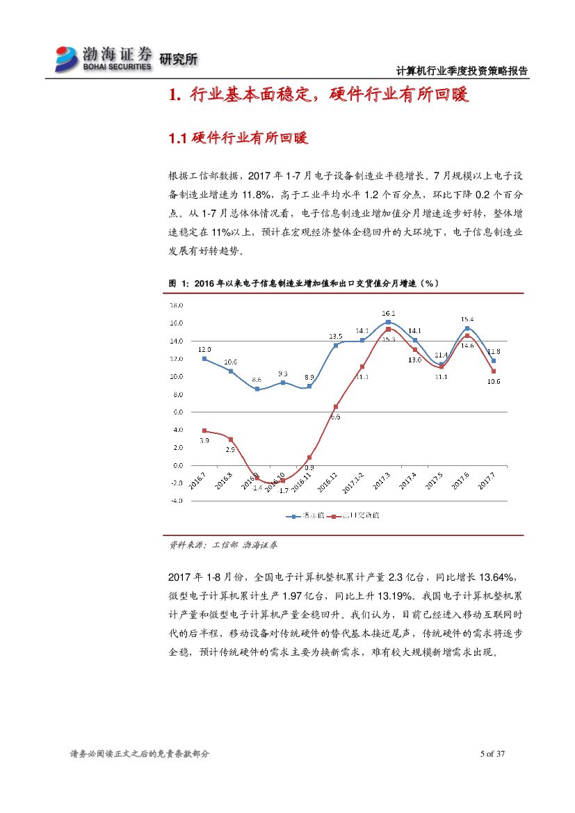 渤海证券:计算机行业2017年四季度投资策略报告:行业基本面稳定,建议关注人工智能、网络安全.pdf