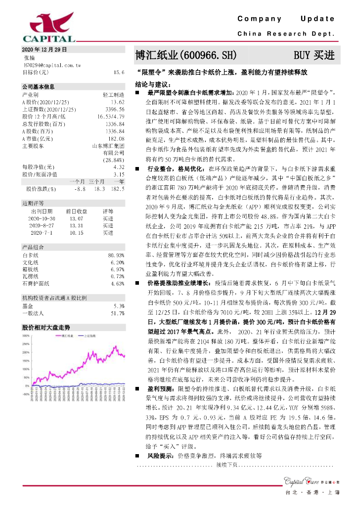 群益证券:博汇纸业(600966)-“限塑令”来袭助推白卡纸价上涨,盈利能力有望持续释放.pdf