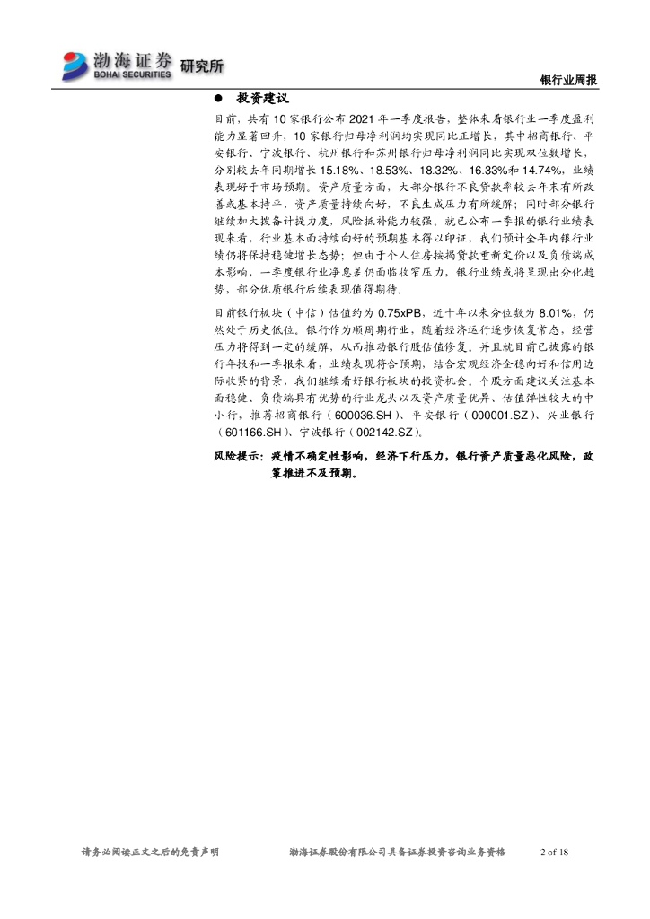 渤海证券:银行业周报:上市银行一季报集中披露,行业基本面持续向好.pdf
