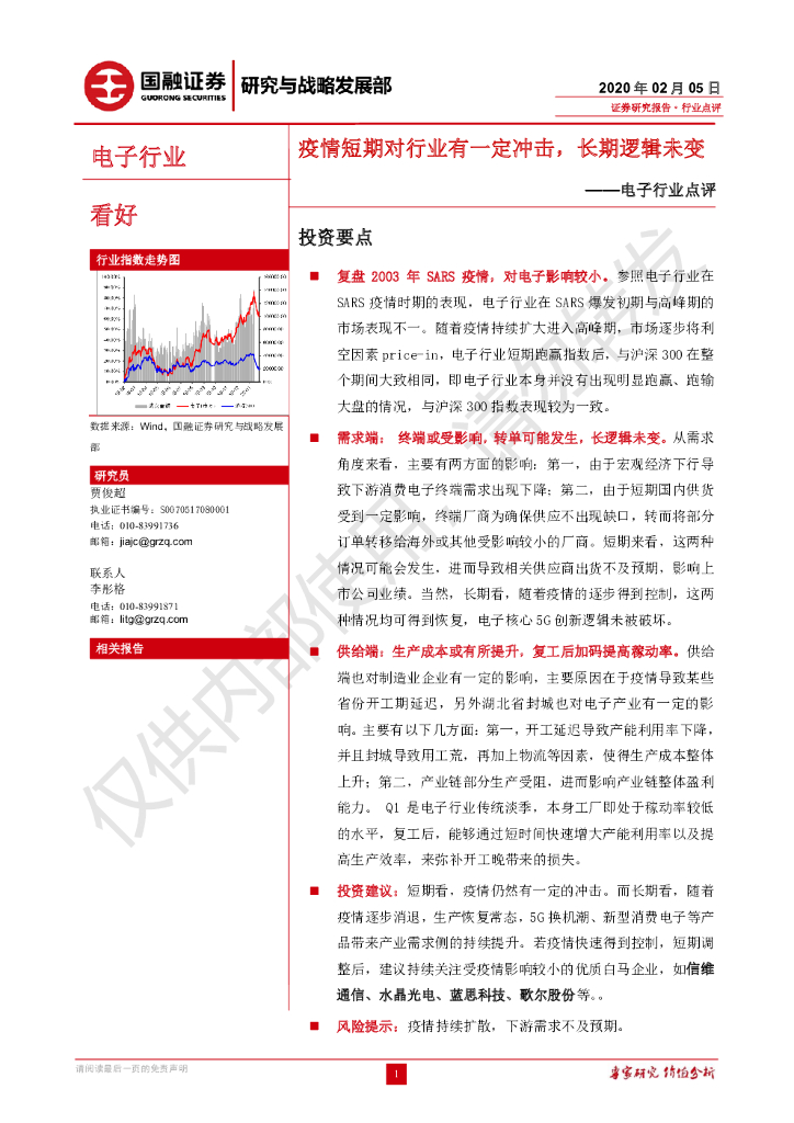 国融证券:电子行业点评:疫情短期对行业有一定冲击,长期逻辑未变.pdf
