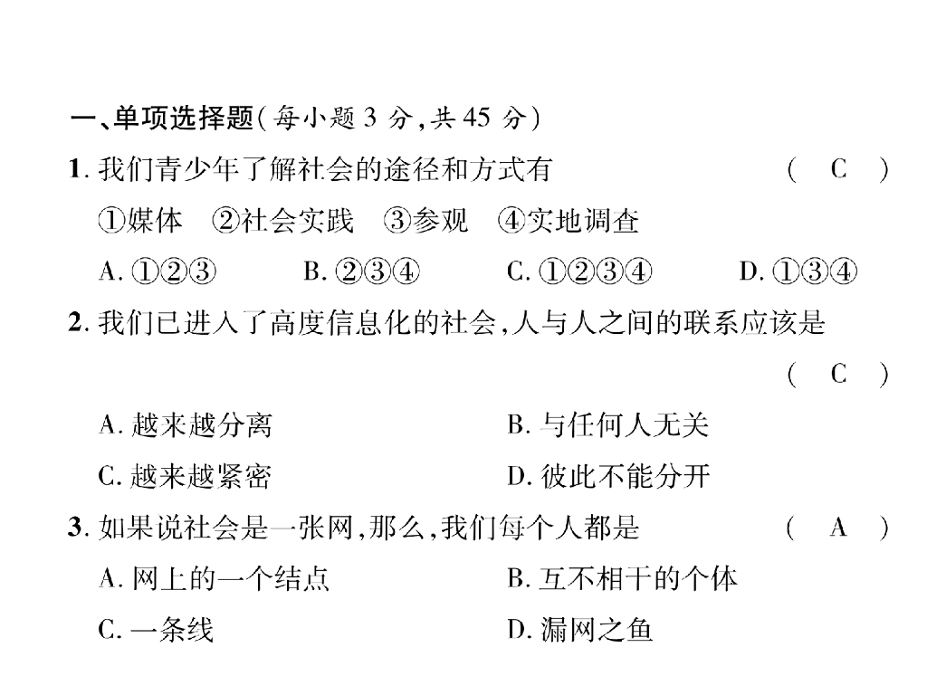 八年级道德与法治上册名师同步作业课件:第1单元达标测试题 (25张).ppt