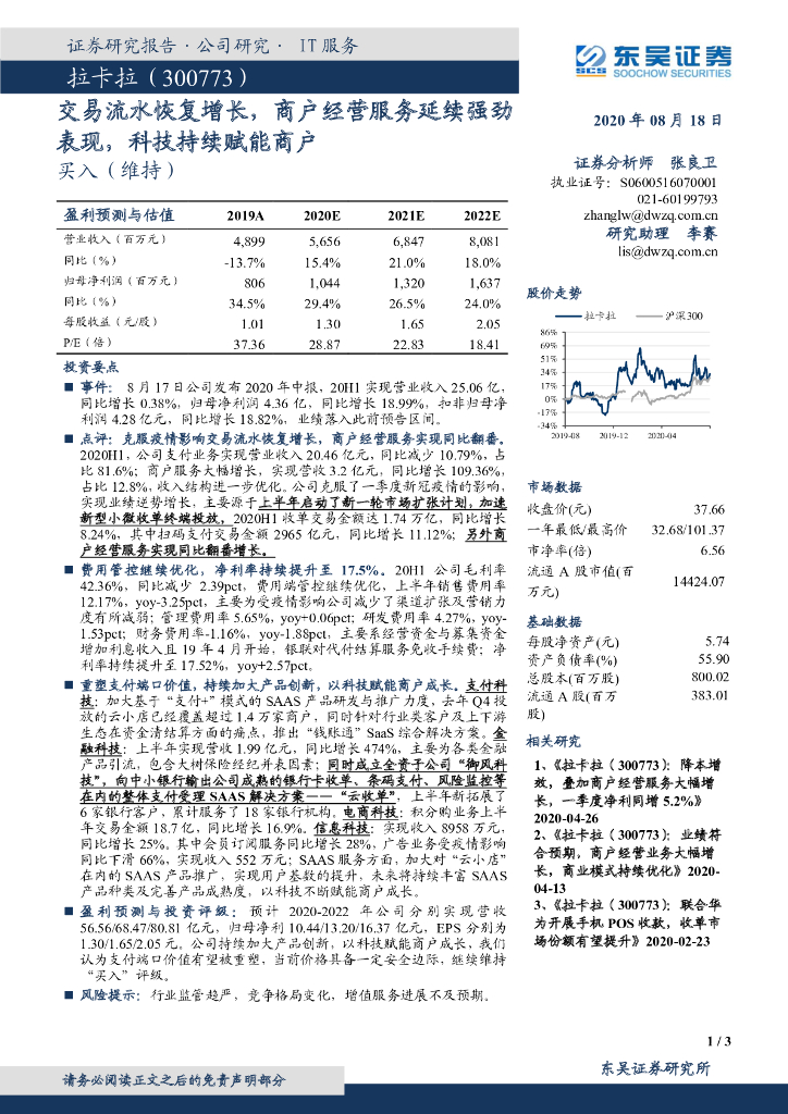 东吴证券:拉卡拉(300773)-交易流水恢复增长,商户经营服务延续强劲表现,科技持续赋能商户.pdf