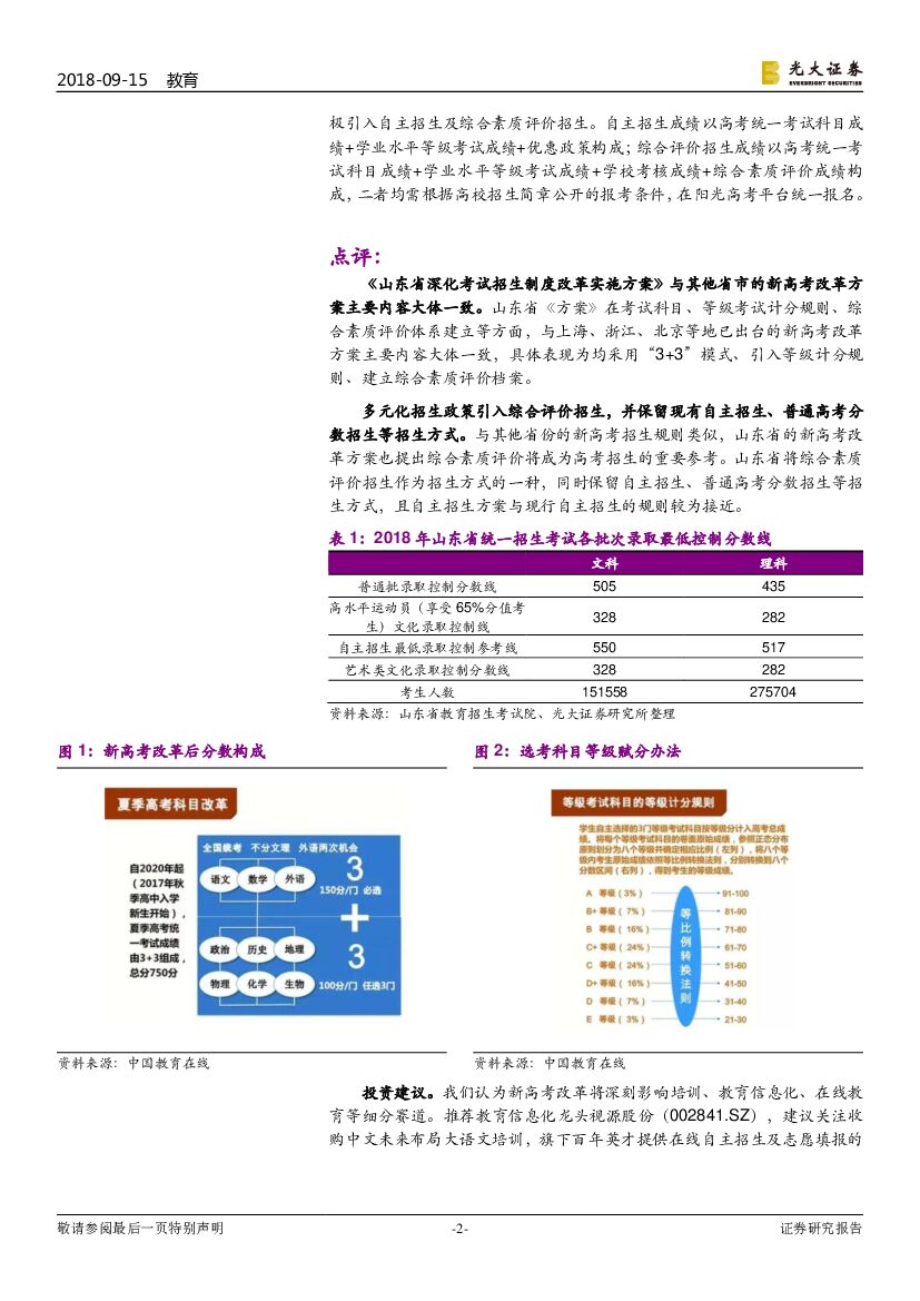 光大证券:教育行业重大事项点评十四之《山东省深化高等学校考试招生综合改革试点方案》:山东新高考:2020年整体实施,引入综合评价招生.pdf