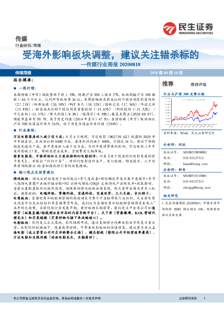 民生证券:传媒行业周报:受海外影响板块调整,建议关注错杀标的.pdf