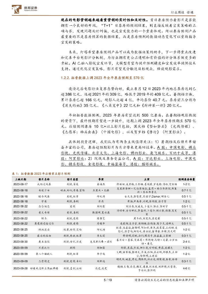 德邦证券:传媒互联网行业周报:23年全年票房预期上调,灯塔推出首个AI大模型票房预测产品.pdf