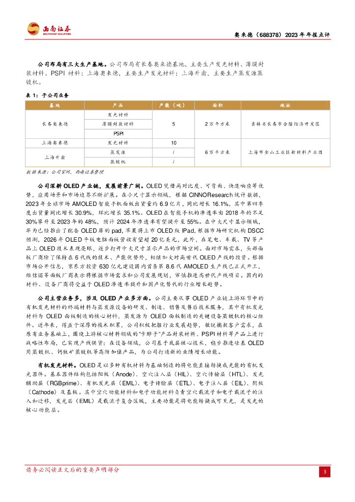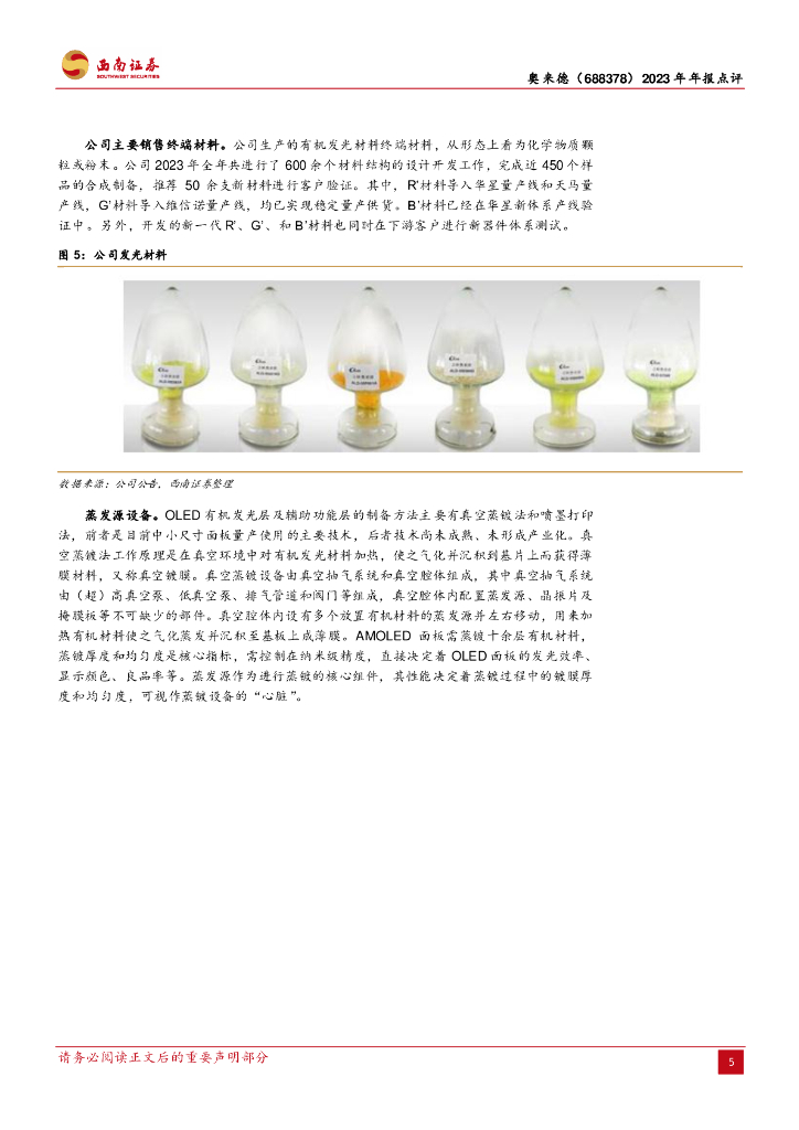 西南证券:奥来德(688378)-2023年年报点评:发光材料大放异彩,国产替代持续发力.pdf