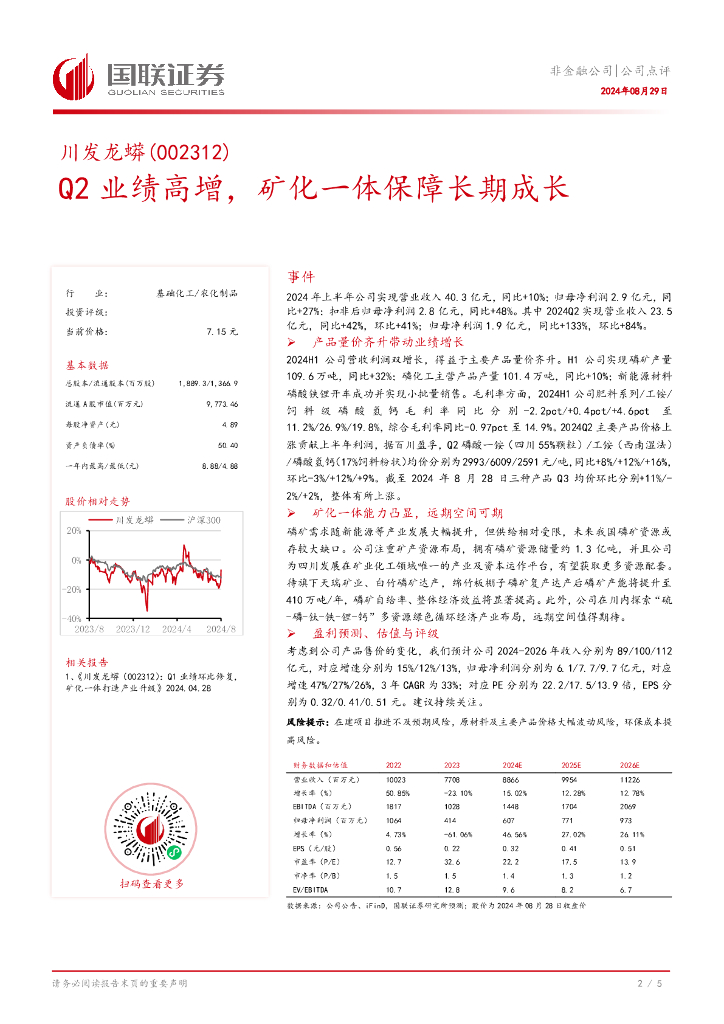 国联证券:川发龙蟒(002312)-Q2业绩高增,矿化一体保障长期成长.pdf
