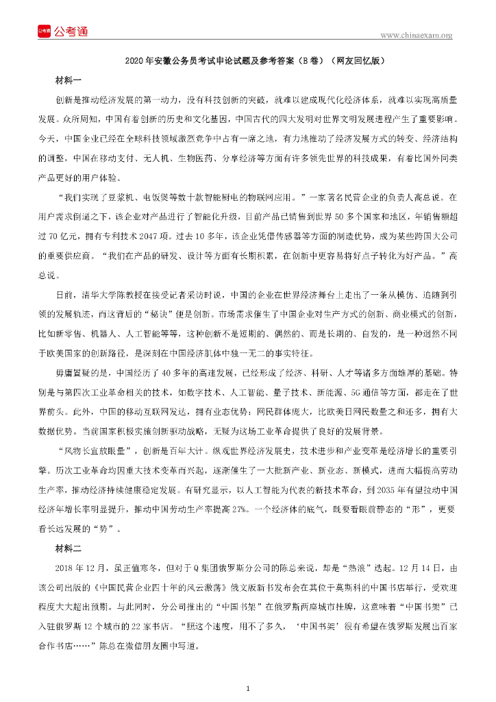 2020年安徽公务员考试申论试题及参考答案(B卷).pdf