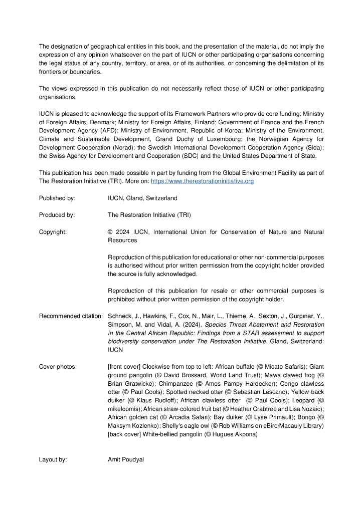 世界自然保护联盟IUCN:2024年中非共和国的物种威胁消除和恢复报告(英文版).pdf