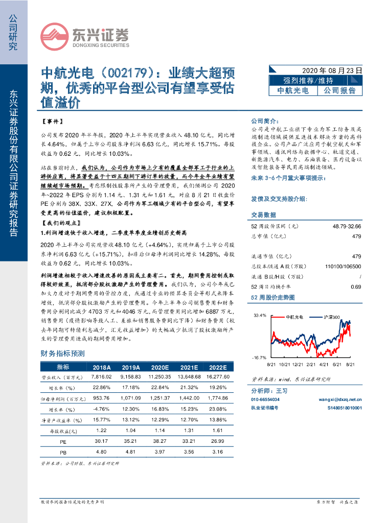 东兴证券:中航光电(002179)-业绩大超预期,优秀的平台型公司有望享受估值溢价.pdf