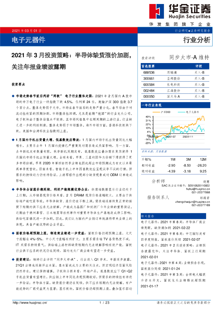 华金证券:电子元器件2021年3月投资策略:半导体缺货涨价加剧,关注年报业绩披露期.pdf