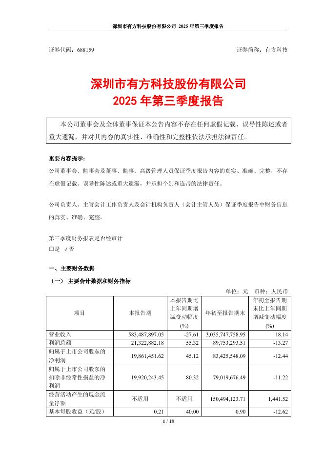 688159-有方科技:2025年第三季度报告.pdf