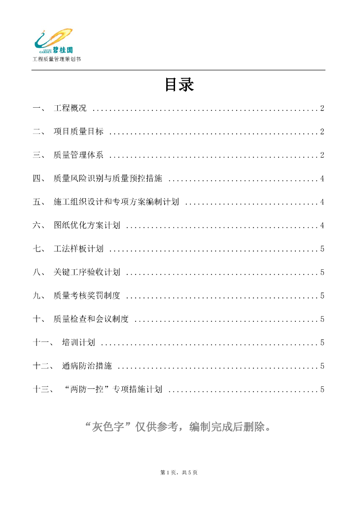 知名地产工程质量策划书模板.pdf