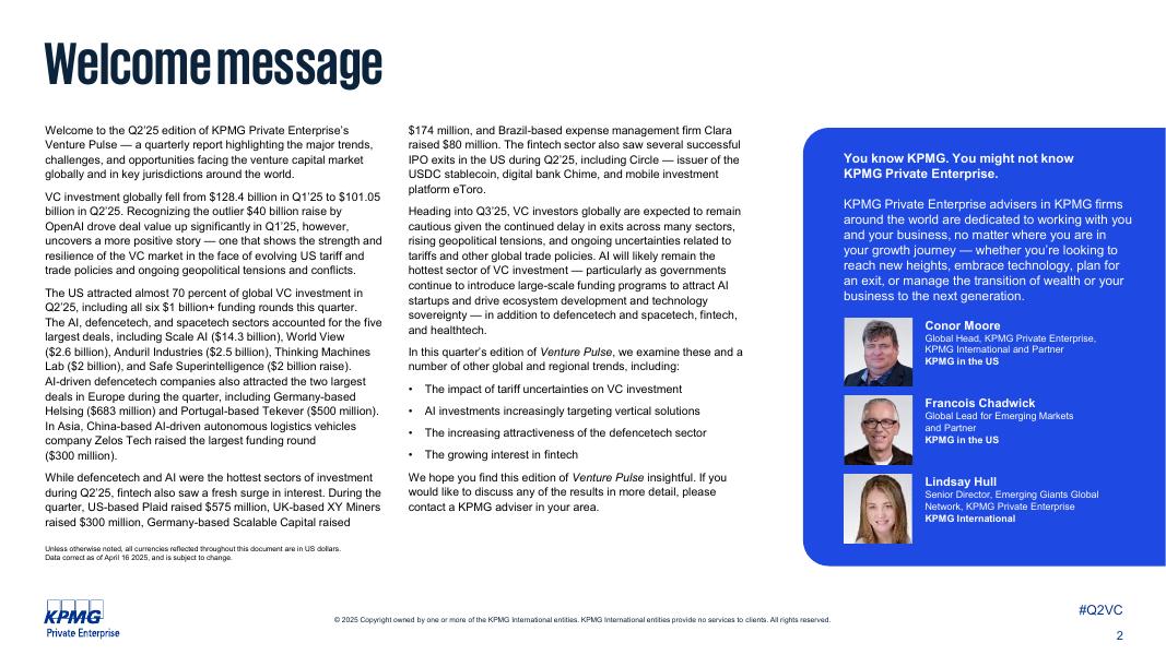 毕马威:风投脉搏:2025年第二季度全球风投趋势分析报告(英文版).pdf