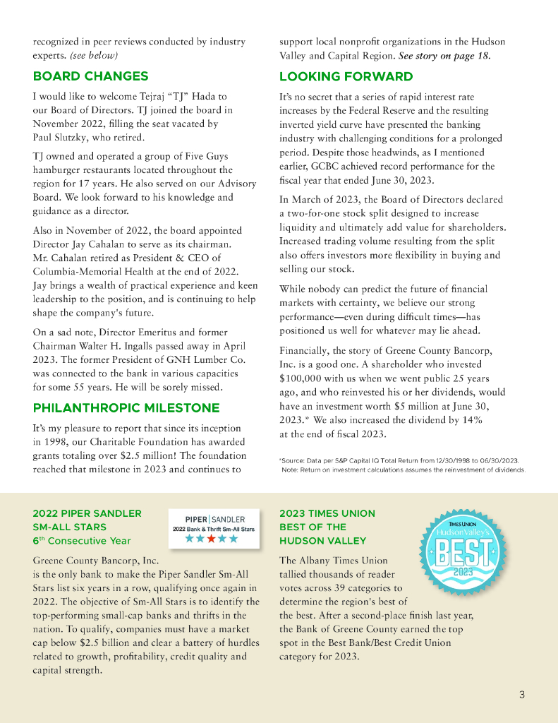 Greene County Bancorp, Inc.(GCBC)2023财年年度报告(英文版).pdf