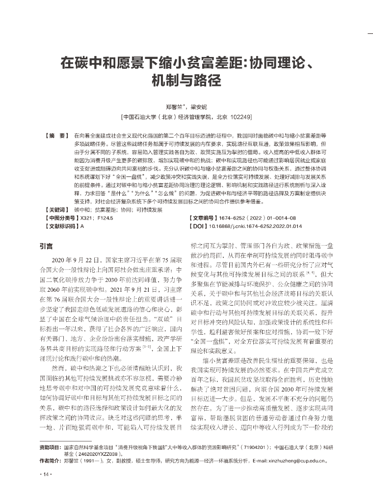 中国石油大学:在碳中和愿景下缩小贫富差距:协同理论、机制与路径.pdf