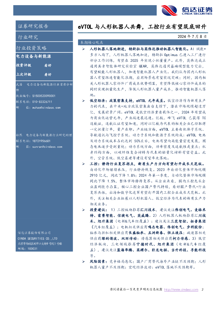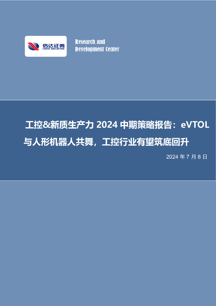 信达证券:工控&新质生产力2024中期策略报告:eVTOL与人形机器人共舞,工控行业有望筑底回升.pdf