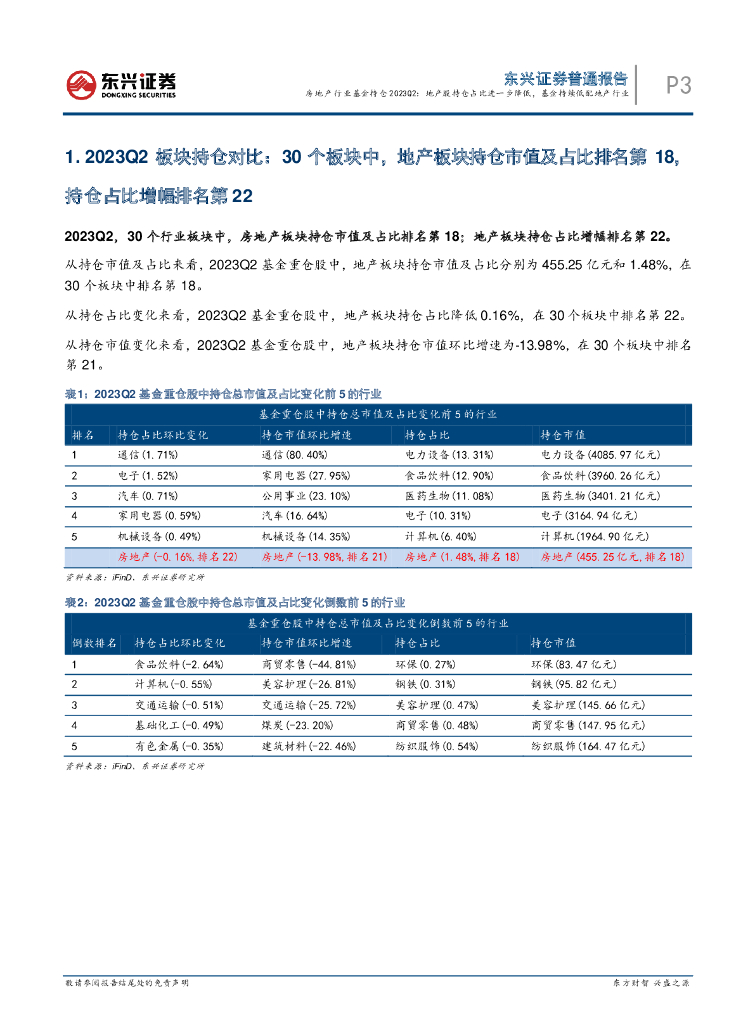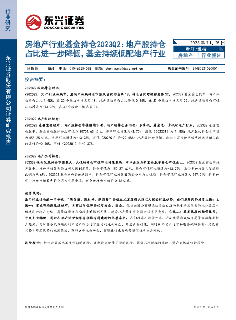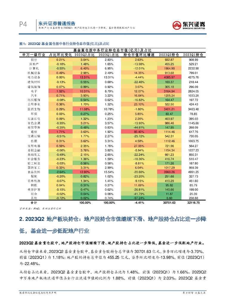 东兴证券:房地产行业基金持仓2023Q2:地产股持仓占比进一步降低,基金持续低配地产行业.pdf