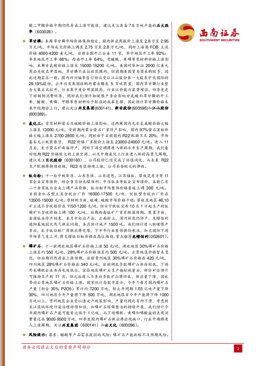 西南证券:化工行业周观点:醋酸、尿素价格持续大涨,看好氟化工产品价格上涨.pdf