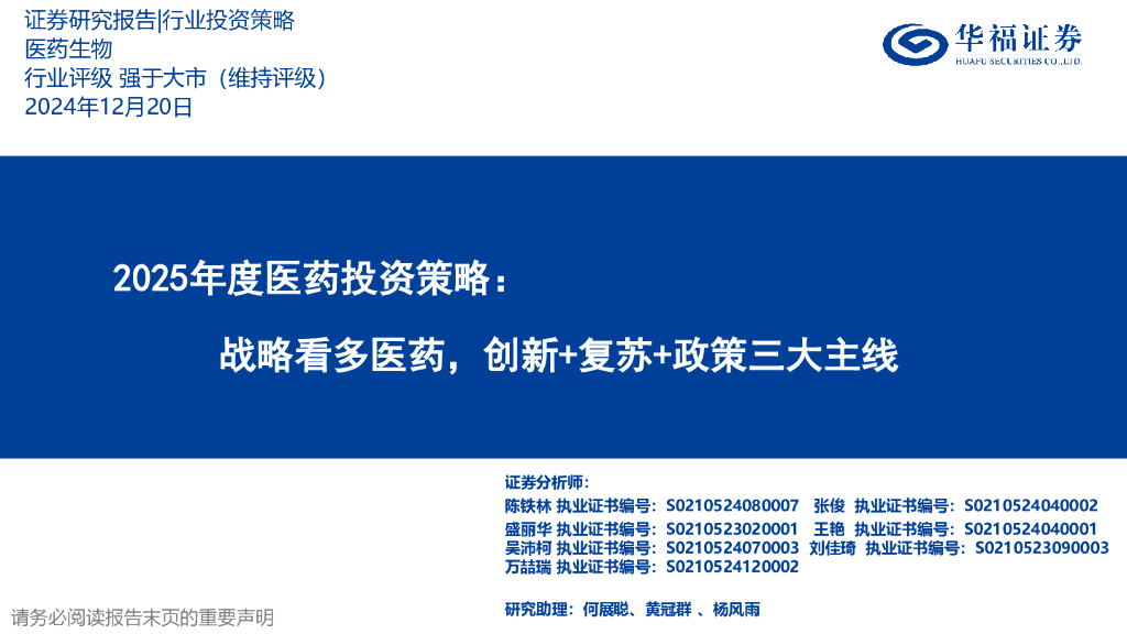 华福证券:2025年度医药投资策略:战略看多医药,创新+复苏+政策三大主线.pdf