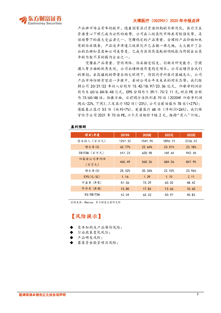 东方财富证券:大博医疗(002901)-2020年中报点评:多方因素促进业绩恢复稳定增长,医改政策推进助力行业集中度提升.pdf
