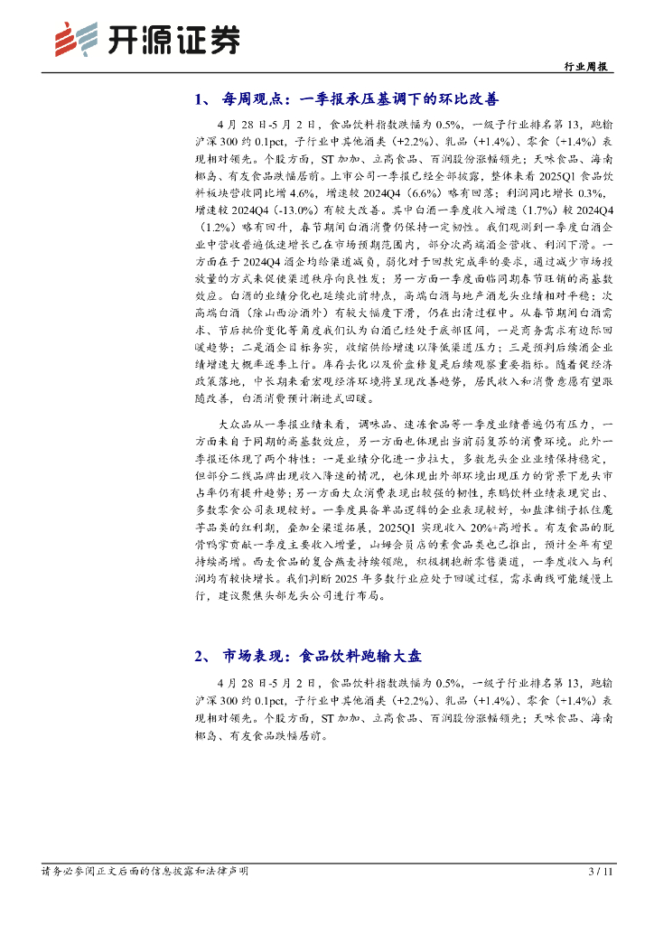 开源证券:食品饮料行业周报:一季报白酒稳健增长,零食新品红利表现突出.pdf