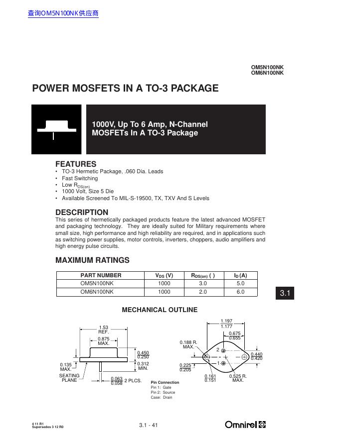 Omnirel OM5N100NK OM6N100NK 数据手册.pdf