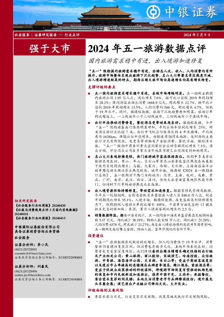 中银证券:2024年五一旅游数据点评:国内旅游需求稳中有进,出入境游加速修复.pdf