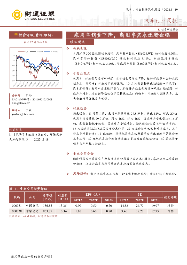 财通证券:汽车行业周报:乘用车销量下降,商用车需求逐渐企稳.pdf