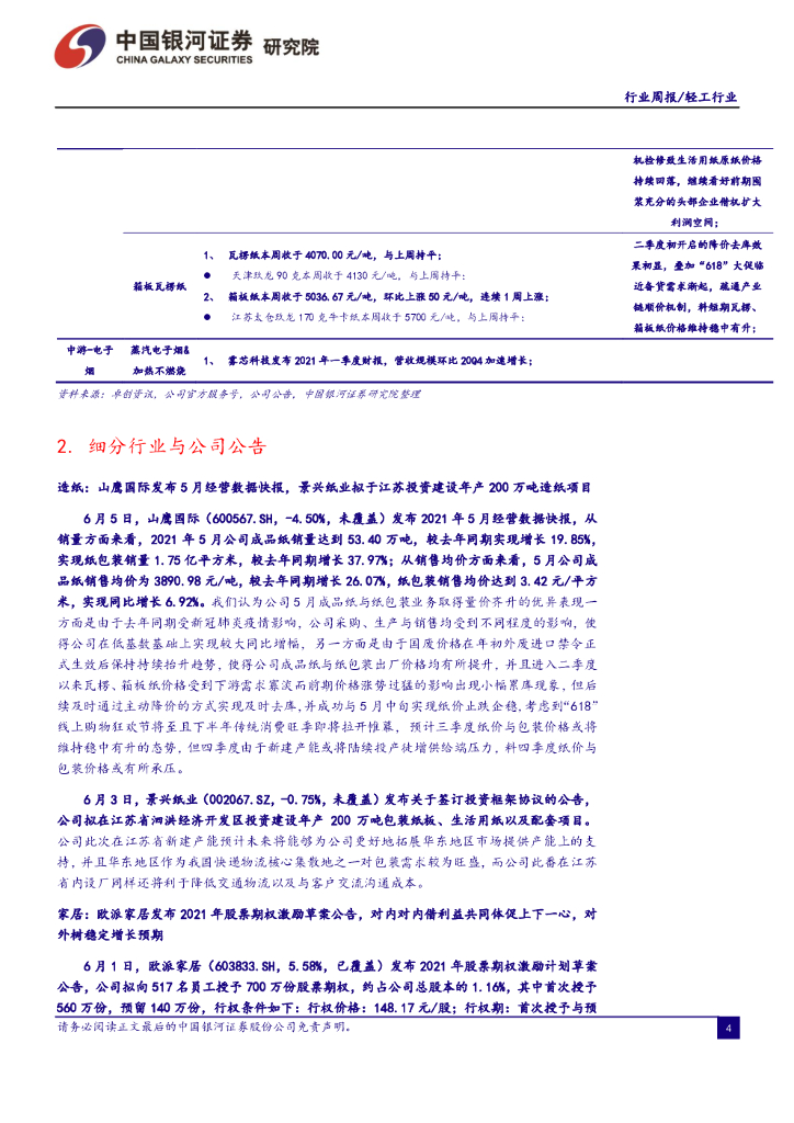 中国银河:轻工行业周报:浆跌累库致纸承压,家居龙头激励目标树稳增长预期,维持推荐行业细分龙头.pdf