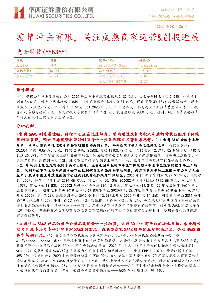 华西证券:光云科技(688365)-疫情冲击有限,关注成熟商家运营&创投进展.pdf