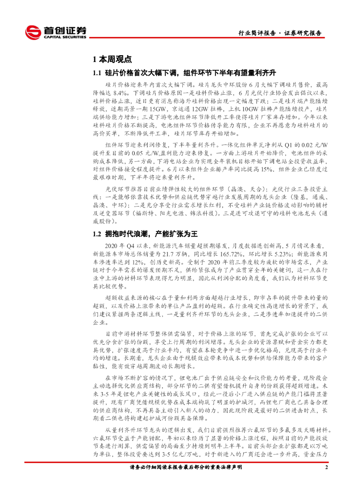 首创证券:电气设备行业简评报告:光伏景气重启再度确认,锂电中游环节扩产为王.pdf