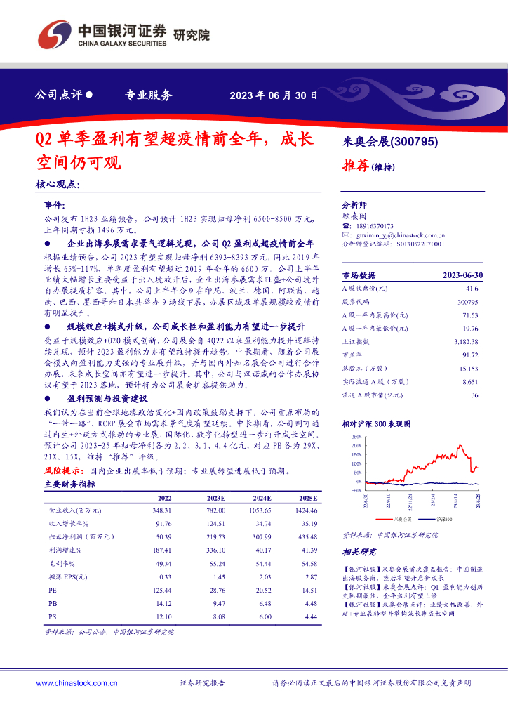 中国银河:米奥会展(300795)-Q2单季盈利有望超疫情前全年,成长空间仍可观.pdf