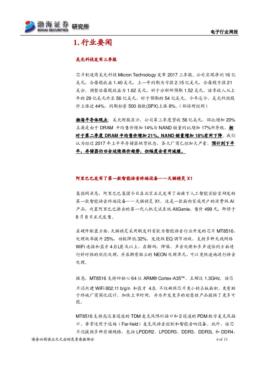 渤海证券:电子行业周报:阿里巴巴发布智能音箱,存储器芯片市场依旧火热.pdf