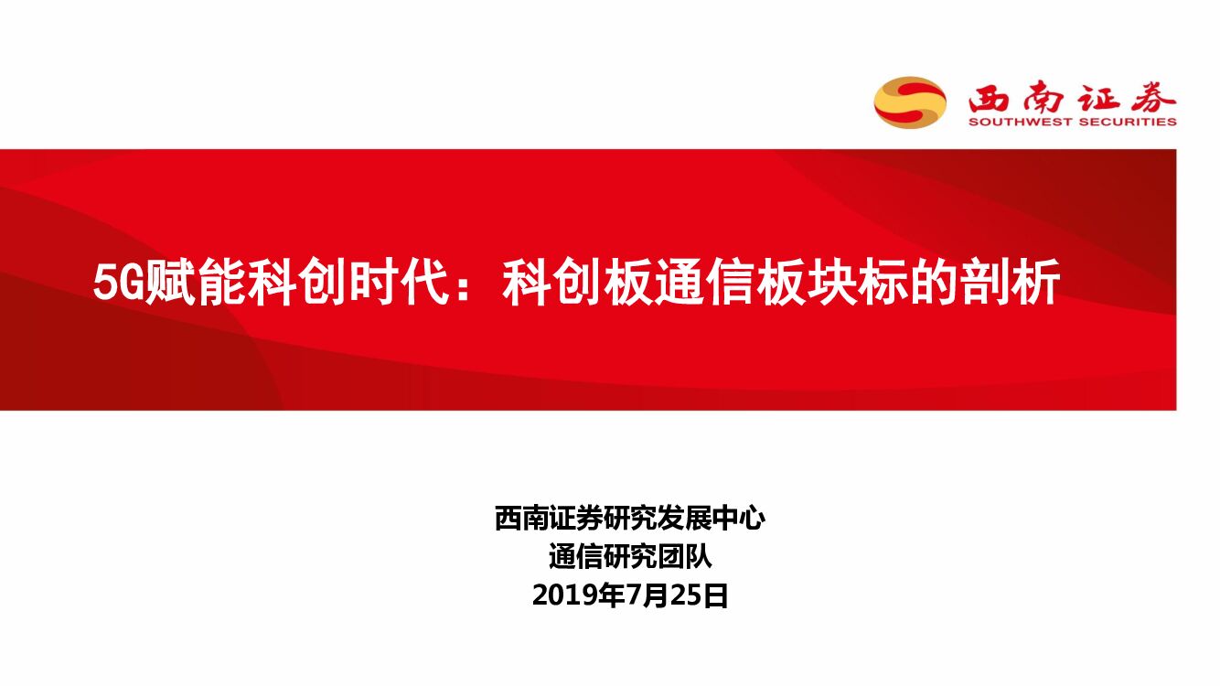 西南证券:5G赋能科创时代:科创板通信板块标的剖析.pdf
