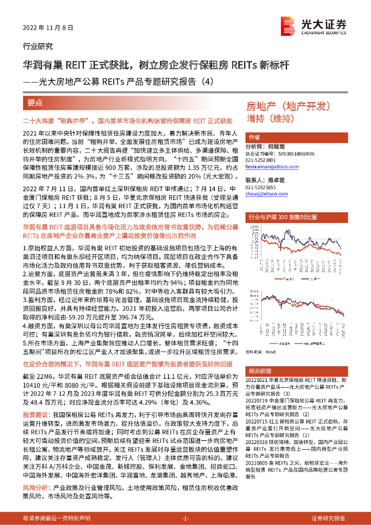 光大证券:光大房地产公募REITs产品专题研究报告(4):华润有巢REIT正式获批,树立房企发行保租房REITs新标杆.pdf